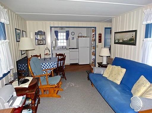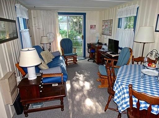 This seasonal 1 bedroom cottage with just under 400 sq. ft looks like a photo right out of Cottage Living! Situated on the corner of the complex with it's picket fence and farmers porch this cottages nails it right on the head! It's located in the small section of cottages and is nestled up against the outer property line and thus offers a nice amount of privacy. The beaches are just a 1/2 mile down the street plus you have the association pool just steps away! This cottage can be sold furnished and is ready for a new owner to call their own.