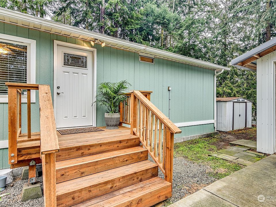 This delightfully updated 2 bed, 1 bath home w/a 2 car detached garage is a real gem. Snuggled in to a tree lined lot offering tranquility and a low maintenance yard. This 960 SF home is cozy but shows big. It would make a comfortable fulltime home, cottage get-a-way, rental, Airbnb, just think of all the possibilities. Yearly HOA dues only $50 with private access to a community beach and boat ramp. Close to Miller State Park with miles of trails for your hiking and biking pleasure. Seven Cedars Casino w/restaurants nearby. Updates include new flooring, interior paint, updated bathroom, some lighting, blinds, water heater, siding, block skirting, deck, porch, vapor barrier and cross over duct. Hurry, don't miss this one!