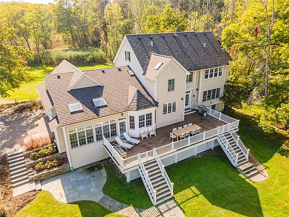 HOUSE BEAUTIFUL WITH ELEGANCE & WARMTH*OWNER HAS INVESTED APPROX $500K IN RENOVATIONS*BEAUTIFUL, SERENE SETTING ON 5.4 WOODED ACRES INCLUDING A SCENIC POND WITH A CHARMING CROSSING BRIDGE TO THE "ISLAND"*3 FAMILY ROOMS*MAGAZINE WORTHY WHITE KITCHEN WITH MARBLE BACKSPLASH, GRANITE COUNTERS & A FABULOUS BUTLER'S PANTRY LEADING TO THE FORMAL DINING ROOM*EXTENSIVE WINDOWS, HARDWOOD FLOORING & MOLDINGS*WOOD PANELED DEN HAS 2ND FIREPLACE, BUILT-INS & POCKET DOORS TO LIVING ROOM*FINISHED WALK-OUT LOWER LEVEL WITH 1100 SF (INCLUDED IN TOTAL SF PER SELLER) COMPLETE WITH FULL BATH & WALL OF WINDOWS* DELAYED SHOWINGS UNTIL WEDNESDAY 10/18 @ 10AM. DELAYED NEGOTIATIONS UNTIL MONDAY 10/23 @ 3PM.