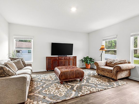 Why wait for new construction? Ready for move-in, this 5 bedroom, 3 bath home showcases a highly functional floor plan, private backyard and conservation area as an extension of the yard. With one bedroom and full bath downstairs, it’s perfectly configured for multi-generational living. Upon entering, the light-filled foyer transitions into the expansive open kitchen, dining and gathering room. At the heart of the kitchen is a large island to enjoy preparing meals while entertaining family and friends. Great natural lighting flows throughout the home from the abundance of windows, and the kitchen features stainless steel appliances and spacious quartz counters. Each of the other four bedrooms are located upstairs, including the oversized primary suite. The home offers landscaping with irrigation and a two car garage with stall mats for gym conversion. Bonus offerings include a generator, gas grill and picnic table. Only one year old, this low-maintenance home is ready for a quick closing and offers the remainder of the builder’s 10 year structural warranty. Ravenswood Villages is a conveniently-located community close to all that St. Augustine has to offer. The location is just three miles to Historic Downtown and three miles to Vilano Beach. This is the perfect address for your next best move.