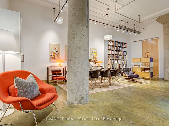 Welcome to Suite 407 at the iconic Brewery Lofts, a celebrated heritage conversion that once housed the CBCs design-prop studios and now stands among Torontos most distinguished loft residences for those who value architectural character and elevated urban living.Designed by the original builder to embody the ideal live/work environment, Suite 407 has faithfully preserved that authentic vision offering 1,950 sq ft of dramatic open space defined by 14-foot ceilings, polished concrete floors, exposed industrial pillars, and a striking wall of south-facing floor-to-ceiling windows. A walk-out balcony evokes a chic, European-style setting for coffee at sunrise or cocktails at dusk.The spacious mezzanine retreat complete with a 4-piece spa-inspired bath and an expansive walk-in dressing room adds warmth, privacy, and abundant built-in storage while maintaining the lofts original character. Further elevating convenience, this residence includes ample in-suite storage, a private garage parking space, and a dedicated locker, a rare offering in a heritage loft conversion. Residents also enjoy exclusive access to a rooftop terrace with barbecue lounge and panoramic skyline views, the perfect backdrop for sophisticated entertaining beneath the city lights. Suite 407 is more than a home it's a statement of heritage and style in one of Torontos most distinguished loft communities. Make Sure To Watch The Video Walk Through!