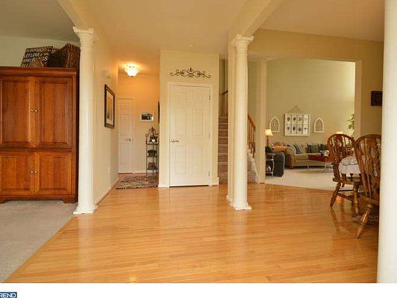 The Richmond Model is Bromley's largest and most elegant end unit. Featuring stately interior columns to accent the unique center hall design of the beautiful home. Beautiful light hardwood flooring throughout the entry way and dining room. The family room features vaulted ceiling with 2 story accent windows. The current owners opted for the 2 foot bump out in the well appointed kitchen giving the eat in area a little more room. The attached 2nd story deck is great for grilling or having your morning coffee. Upstairs the luxurious master suite includes a elegant tray ceiling. large walk in closet and spacious bath with corner soaking tub and separate shower. Hard wood floors are featured in one of the upstairs bedrooms as well. The lower level in this home features a 22 X 18 Finished area that could easily be a second family room, home theater, or even an in-law quarters. Yet there is still plenty of space for storage. A 4 car driveway and 2 car garage provide plenty of parking space for you and your guests.