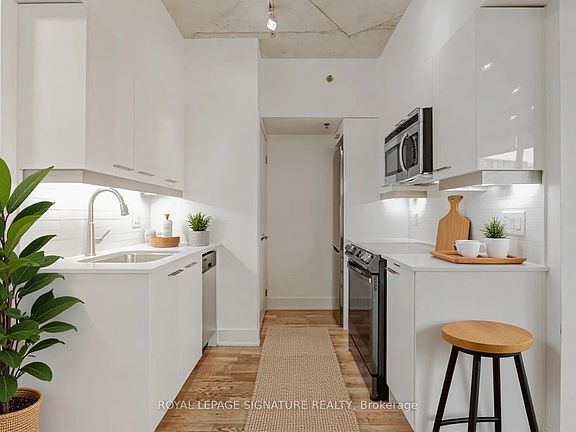 Welcome to Trinity Lofts!This open-concept, loft-style 1-bedroom suite at 90 Trinity St #503 offers the perfect blend of style and function. Soaring 9' exposed concrete ceilings and wall-to-wall windows fill the space with natural light. Enjoy a spacious bedroom with large windows, sleek hardwood flooring throughout, and a modern kitchen with stainless steel appliances and stone counters - ideal for entertaining.Just minutes to the Distillery District, St. Lawrence Market, George Brown College, top restaurants, cafes, grocery stores, and dog parks. Easy access to the DVP and all that downtown living has to offer.