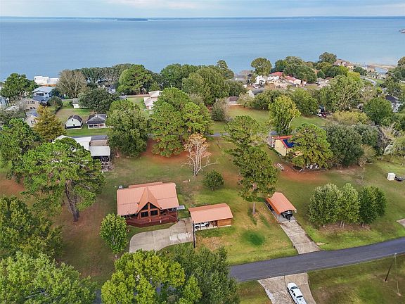 Welcome to your charming year-round log home on four spacious lots with beautiful lake view in the desirable Coldspring Terrace subdivision at Lake Livingston! From the inviting front porch, relax and take in the stunning scenery and peaceful sounds of nature. Step inside to welcoming dining area that flows seamlessly into the open concept living room with warm wood ceilings. The kitchen is bright and functional, featuring breakfast bar, SS appliances and picturesque views through the back double doors. Primary bedroom includes outside access and an ensuite bath for added privacy, while two secondary bedrooms share a full bathroom. Outside leads to covered patio, perfect for morning coffee or evening gatherings. Spacious backyard and side yard include firepit area for relaxing under the stars, 2-car detached carport with attached storage and additional driveway with covered RV parking. Enjoy community amenities including pool and boat ramp. Experience the perfect blend of tranquility.