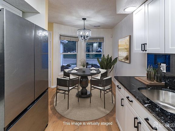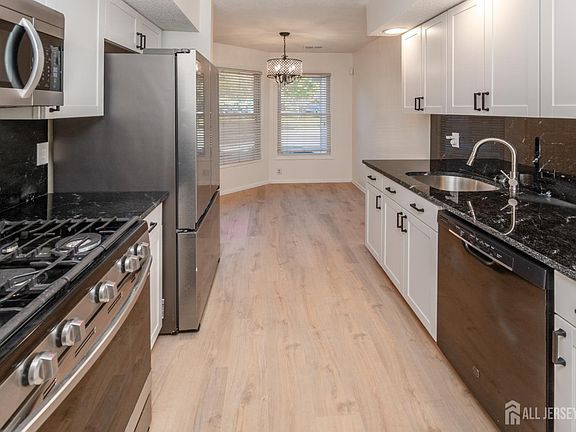 One of the best locations! Situated on a quiet cul-de-sac just across from the community pool, clubhouse, and recreation, this beautiful 3-bedroom townhouse boasts a BRAND NEW kitchen with sleek stainless steel appliances and gleaming black granite countertops that impart a modern feel the moment you enter. In addition to a sunny breakfast bay, the living and dining rooms flow seamlessly together, creating an open flow when gathering with friends. A wood-burning fireplace, easily converted to gas, adds warmth and character, while an extended patio for barbecuing backs to a stretch of woods for natural serenity while enjoying the fresh air. Pristine Pergo flooring on the first floor transitions to soft new berber carpeting upstairs and all 3 bathrooms show off stunning updates, like marble tile or a vessel sink, making this a totally move-in ready home at any time. The HOA covers roof and siding replacement when needed, keeping maintenance stress-free. Commuters will especially love the prime location close to shopping, restaurants, and major highways - Route 18, Route 9, Route 1 and NJ Turnpike. Plus, Blue Ribbon schools are just beyond the bounds of the neighborhood. Plenty of guest parking, in addition to the garage and driveway, adds to the easy lifestyle. Brand new mounted Samsung 55 inch TV included.