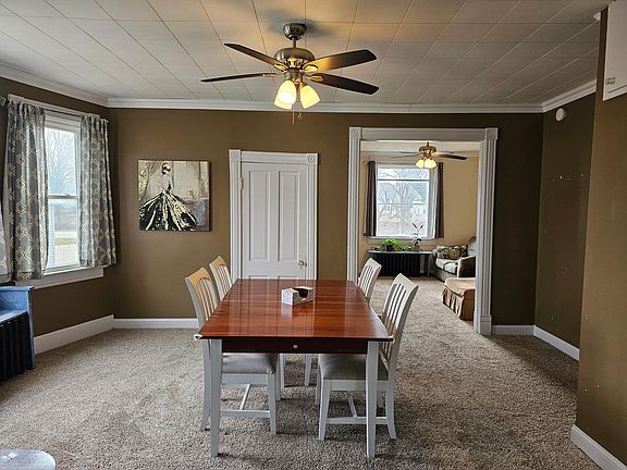 Charming and well maintained HOME now ready for a new Owner! This 4 Bedroom, 2 Bath home a wide open floor plan yet keeps its 1920s charm. The benches in the Dining and Living Rooms are original to the house. The Kitchen has 2 ovens, a new dishwasher, built in desk, electric baseboard heat and pull outs in the pantry cupboard. Main floor Laundry for convenience. The closets in the upstairs bedrooms have the original wallpaper! Plenty of wildlife on walks and quiet small town living. Oversized 2 car garage.