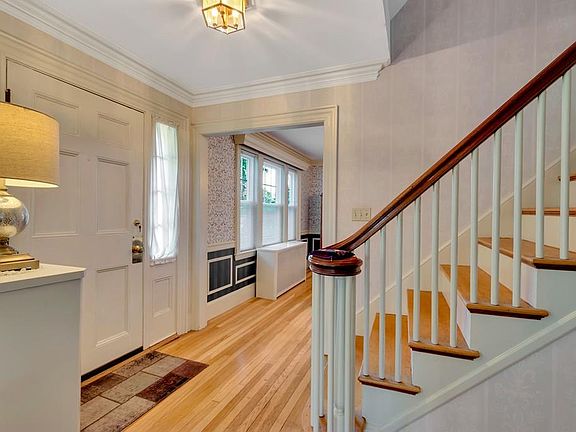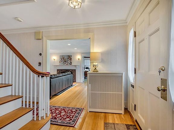 Charming home is a must see! Beautiful home with hardwood floors throughout, sunlit eat-in kitchen with large island centered with a brand new down draft stove. Washer/dryer is neatly hidden away in the kitchen. Large living room with fireplace, paired with office/den through two french doors. Dining room has entrance into the enclosed porch. Master bedroom on second floor with walk in closet, additional bedroom includes walk-in closet with access to enclosed balcony. One office on second floor. Third floor attic includes zoned fourth bedroom and full bath which has endless possibilities to change. Two car garage and four additional off street car parking. Home is equipped with Nest Thermostat to control heating system with your cell phone!