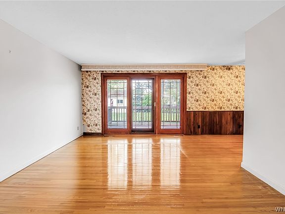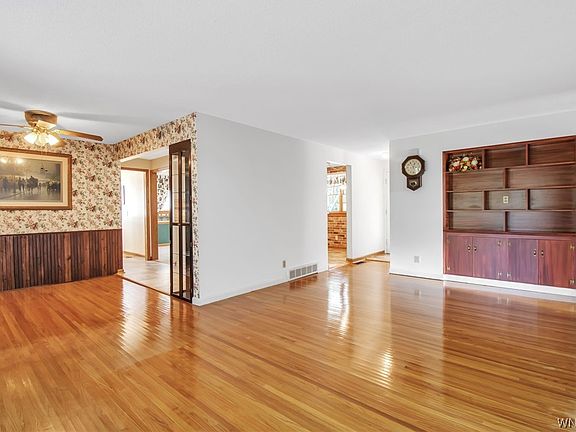 MUST SEE!!! SPACIOUS & brick-front renovated ranch in Tonawanda that is MOVE-IN READY with an inviting front porch. Featuring a beautifully remodeled kitchen with charming cabinetry, brick porcelain tile backsplash & Corian counters w/plenty of prep space opening to the generous living room and dining area with gorgeous hardwood floors throughout. With an OPEN LAYOUT concept & an abundance of NATURAL LIGHT, this desirable home has 1.5 attractive bathrms w/tile floors & newer vanities with three large bedrooms w/newer carpet & hrdwd underneath. Beautifully appointed exterior w/a fully-fenced yard & back deck, perfect for sipping your morning coffee and enjoy the serene yard w/two car detached garage. Enjoy ease of living with first floor laundry and many updates inclu landscaping & new front foundation wall 2023, sump pump 2021, arch. shingle roof & half bath 2019, whole house generator 2018, kitchen 2017, back deck 2016, high-eff Trane furnace & A/C 2012, HWT 2009, newer windows & more. Meticulously maintained & VERY clean, this delightful home rests on a PEACEFUL street w/low taxes, great schools & very close to ALL conveniences! Showings begin 9/27. Offers due 10/02/2023 by 12PM
