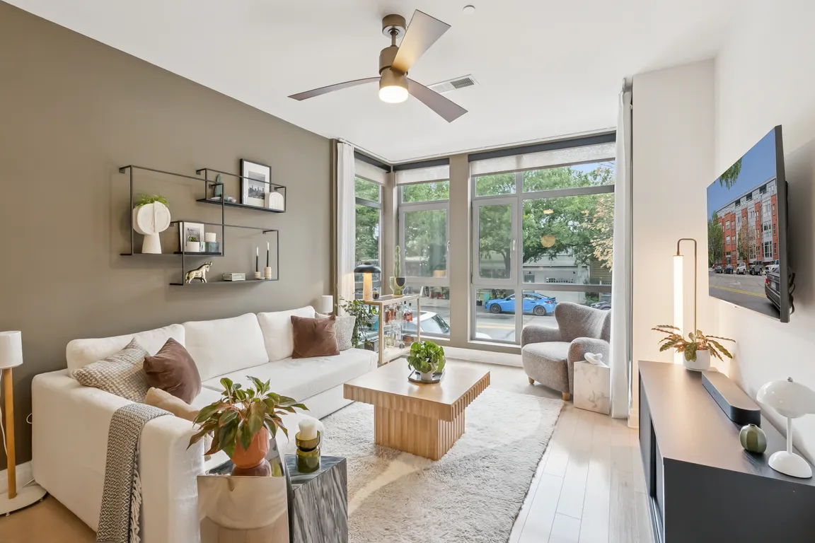 Welcome to this luminous 1-bed, 1-bath condo spanning 678 sq ft and designated surface level parking space, situated on Capitol Hill. With 9-ft ceilings, wide-plank hardwood floors, and floor-to-ceiling windows, this unit strikes the perfect balance of elegance and ease. The chef-inspired kitchen features quartz counters, waterfall island and stainless-steel appliances, ...