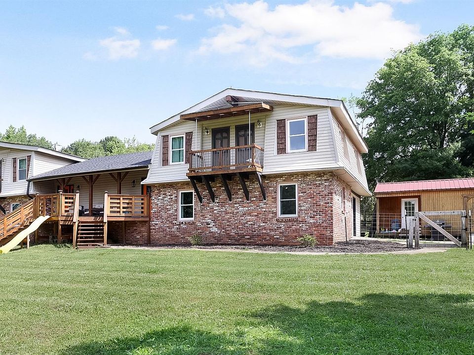Back on the market after buyers just couldn't get financing! Their loss your gain! Home was inspected and seller performed multiple repairs. Family member currently lives in 900--will move upon closing. AMAZING DUPLEX!! Very spacious and beautifully updated! Many luxury finishes--granite countertops, unique lighting, specialized bathroom tile and fixtures. Unique front porch with a slide to the fenced front yard and a sliding gate in front of the steps. Each unit has over 2012 sq ft, with 3 bedrooms and 2 baths upstairs. The main level has a living room with a very unique fireplace. On ground level is the kitchen, and eating area and a half bath. There is another room, which could be used as an office, playroom, homeschool room, or turned into a garage. The possibilities are endless! Very quiet neighborhood in Mayo/Cherokee area, with a small pond in front--sit on the front porch and listen to the bullfrogs! On almost 3 acres--most animals are allowed as there is no HOA. Both sides have an attic fan. Septic tank was pumped about 7 months ago. Fireplaces do not currently work.