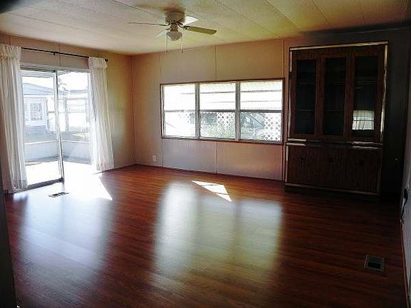 2 bedroom, 2 bath double wide mobile home with laminate flooring and carpet. Central a/c, kitchen exhaust fan. Friendly 55+ active community, no pet policy. $594 monthly lot rent. Great location with local shopping and restaurants just around the corner, minutes to Ellenton Premium Outlets, downtown Bradenton / Palmetto, hospital. Anna Maria Island only a 30 minute drive away. ***PRICE REDUCED to $5,000 for May 1 move in!!!***