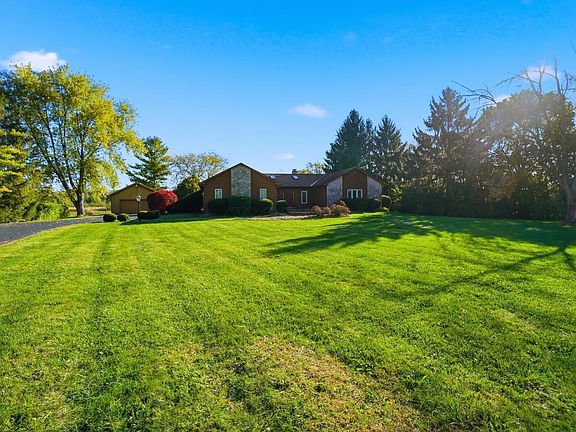Custom built ranch with full unfinished basement.  Open floor plan with 40 x 20 Ingound/salt system pool.  Pool liner was replaced 2017 by Surface Side Pools & Spas, they open and close the pool every year.  You enter the home into a large foyer which overlooks the huge great room with raised hearth, stone faced gas fireplace. The kitchen  has Amish built cabinets, counter-top range, wall over & microwave, 2015, a Dishwasher 2017, also included is a trash compactor.  Views of the large formal dining room with double french doors opens to screened porch which overlooks in-ground pool area. Great room is also fully visable from the kitchen.  Off the dining room is a huge walk-in pantry and laundry area.  The bedroom area consists of master bedroom suite, 2 additional bedrooms with double closets and ceiling fans. The guest bathroom is also located in this area, along with a large guest closet.  The basement has been water-proofed and 2 sump pumps installed with battery back-up, 2015.  Large rec room, half bath, utility area with 200 amp electrical service, Furnace and AC, hot water tank and water softener 2016/2017, additional area, could be office, home gym or bedroom. This home is plumbed with some pex and copper plumbing.   Rositi replacement windows and front door installed in 2016, solid wood 6-panel doors are also throughout the home.  New driveway in 2023, water heater 2020, great room floors 2020, water softener 2017. 2-car attached garage with opener and 2-car detached garage with 1/2 bath and workshop/storage.  Lot size is 1.41 acres and rear of the home has a paver patio and walks.  Pool equipment is located at the rear of the detached garage.  Iron fencing surrounds the saltwater pool and overlooks an open field in the rear.  Enjoy this all-electric country home! Easy to show and available at closing.