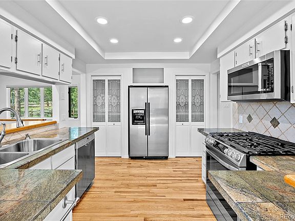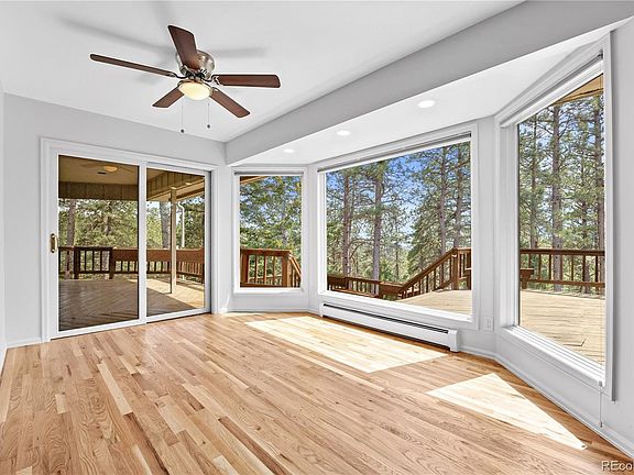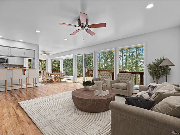 Tucked at the end of Ballantine Road, this refreshed mountain sanctuary delivers a rare fusion of raw Colorado and turnkey ease. Its relatively flat, fully usable ¾-acre mountain parcel gives you room to breathe and a front-row seat to roaming deer, hummingbirds, and fiery alpine sunsets. A fenced backyard offers level space for pets, a future hot tub, or impromptu yard games beneath the pines—proof that “mountain” and “playable terrain” can indeed coexist. An expansive heated three-car garage (23 × 27), a long detached one-car garage (29 × 14) can house multiple vehicles or adventure toys, and a second outbuilding shelter everything—from mountain bikes to backcountry skis. Recent upgrades invite you to drop your bags and live: newer roof, high-efficiency radiant boiler, fresh interior paint, plush carpet, refinished hardwoods, LED lighting, rocker switches, updated outlets, and more. Gather on the sun-drenched deck that feels suspended among treetops while mountains peek through evergreens, with broader vistas possible. Inside, the primary suite boasts dual walk-in closets; below, a walk-out level hosts media, office, and guest quarters, spilling onto a ground-level deck where spring poppies paint the yard. Radiant heat keeps toes toasty, double-pane windows frame evergreen views year-round, and high-speed internet powers razor-sharp Zoom calls. Trailheads—including the 12-mile Apex system, Chimney Gulch, and Beaver Brook—sit minutes away, while I-70 puts you creekside in Golden in about 20 minutes, on a LoDo patio in about 30, or enjoying Summit County slopes in roughly an hour. Multiple living spaces, abundant storage, and main-level laundry complete a floor plan designed for adventure and ease. Whether you crave an elevated basecamp or a peaceful perch for remote work, this home proves you can have it all—mountain serenity plus instant access to Colorado playgrounds. Opportunities this balanced are rare—schedule your tour today!