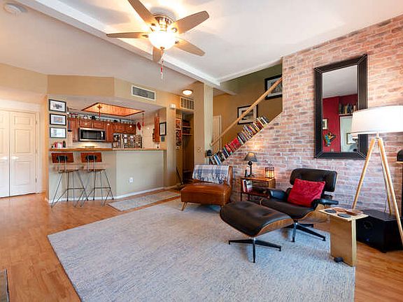 3rd and 4th floor townhome layout, corner unit with new windows and a detached garage. Both bathrooms have been updated/remodeled. Large windows provide lots of natural light. 9 foot ceilings expand the space. The condo has a balcony with a storage closet. Kitchen has dishwasher, microwave, fridge, stove, and a breakfast bar. Washer/dryer provided!