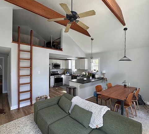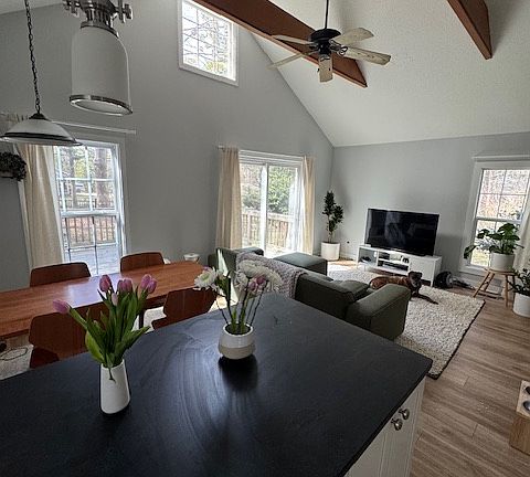 This recently updated home features a large, open kitchen/dining/living area with LVP flooring and a vaulted ceiling. The new kitchen boasts stainless steel appliances and granite countertops. Additional upgrades include new windows, doors, bathrooms, and lighting fixtures. The property includes a garage, private driveway, fenced yard, and a large deck perfect for relaxation and entertaining. The home offers 2 bedrooms, 2 full bathrooms, a laundry room (washer/dryer not included), and a bonus loft area. Conveniently located near a bus line, providing easy public transportation to town and university activities. Available after 11/5 as tenants will be leaving. Please reach out to owner for questions and appointments/prescreening.