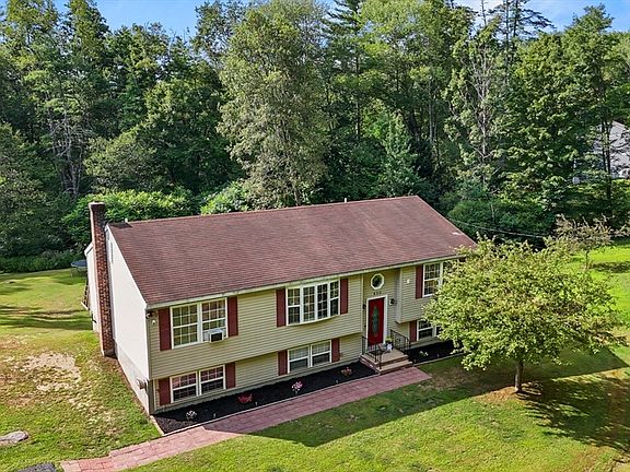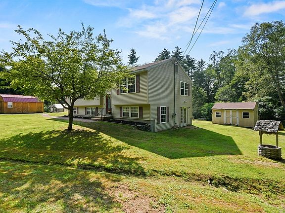 ALL OFFERS DUE BY Monday 8/18 6pm Nestled on over 2 acers his charming raised ranch offers the perfect blend of comfort & convenience. The sun-filled living room, highlighted by a bow window, flows seamlessly into the kitchen & dining area. The spacious kitchen features a center island w/ addit'l seating & ample counter space, while a sliding glass door opens to the back deck for effortless indoor-outdoor dining. The primary bedroom boasts a private bathroom & generous closet space, w/ two addit'l bedrooms & full bath completing the main level. The finished lower level offers an addit'l bedroom. With roughed-in plumbing, electrical & sheetrock in place, the remaining space is ready for your personal touch & could be ideal for multi-generational living. Enjoy the privacy of your backyard, complete w/ storage sheds & plenty of room for outdoor activities. Recent updates include a new heating system (2021). Tucked away for peace & quiet, this home is just mins from shopping, dining & more
