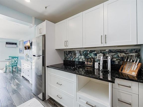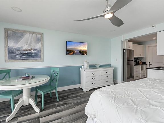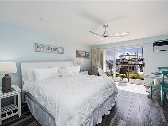 This rarely available, corner, end unit has so much to offer, from being completely renovated to its picturesque views of Naples Bay and the prime location in historic Old Naples. The kitchen combines function and character, with a larger refrigerator, 4-burner stove top, granite counter tops, and fun microwave and backsplash. The bathroom has been updated to include an additional closet, contemporary glass shower doors and tile, and granite vanity top. Other features include a tile floor, attractive furnishings, and sheer and room darkening draperies, storage locker. One of the more special upgrades is the aluminum panel water barrier system by Garrison that is effective and simple to install. For additional sleeping space the chair converts to a single bed and includes the linens. The Cove Inn on Naples Bay is a quintessential get-away home, as well as an opportunity to earn rental income. Owners automatically have membership to the exclusive Cove Yacht Club which provides use of the coveted private Chickee Bar. Amenities also include beach chairs, umbrellas and pool towels available for check-out, on-site laundry facilities, complimentary WiFi, a business center, and for a nominal fee bike rentals and a pass for access to the NCH Briggs Wellness Center. The Cove Inn' s Coffee Shoppe is also well known among locals for its delicious, classic, American breakfast. The ideal location is adjacent to the Boathouse, the Dock and other Crayton Cove restaurants, and less than a mile to downtown Naples’ bustling shops, restaurants and festivities, not to mention its famous Gulf of Mexico beaches.