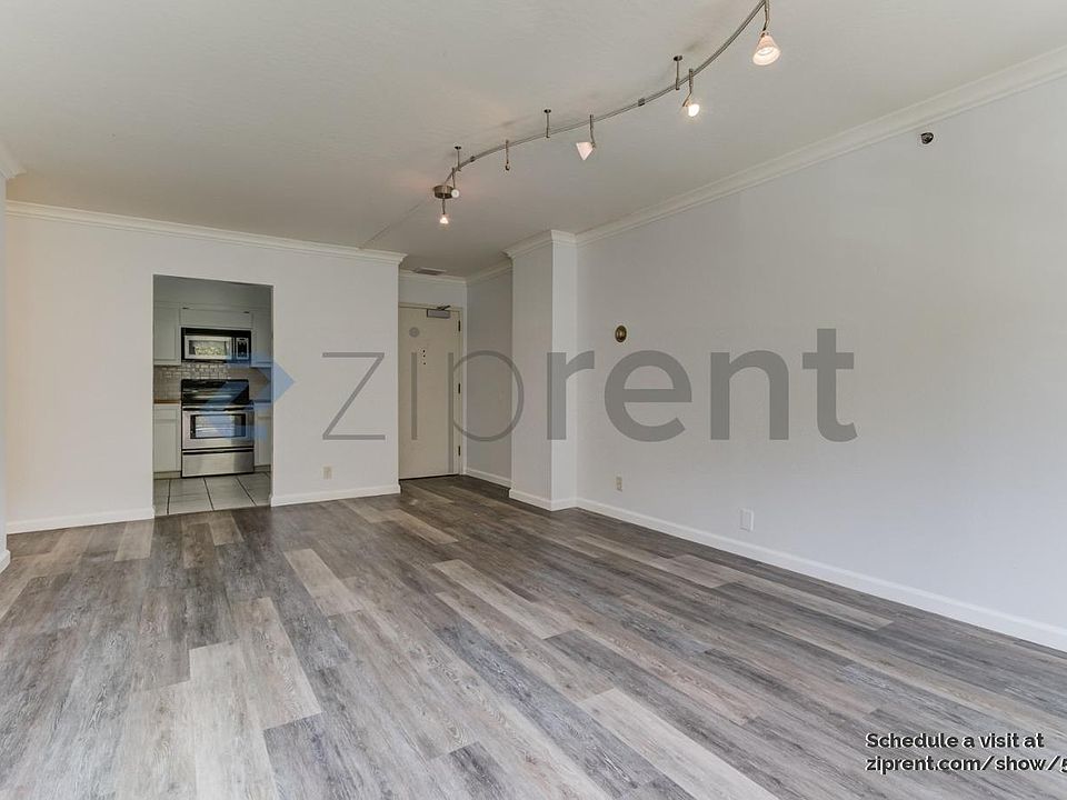 MODERN LUXURY - 2 bedroom, 2 BATH condo - Spacious living room with hardwood laminate flooring, updated kitchen with PLENTY of cabinet space and STAINLESS STEEL appliances including refrigerator, dishwasher, and GAS stove. Bedrooms have good-sized mirrored closets. Modern chic light fixtures and touches throughout! Close to Downtown, Union Square and Nob HIll. *Parking*Patio*Pool*Gym*also-Tons of Sun! 24 hour lobby attendant, flexible guest parking. INCLUDES 1 car parking and Great Storage. Rent includes water, trash, sewer, cable.