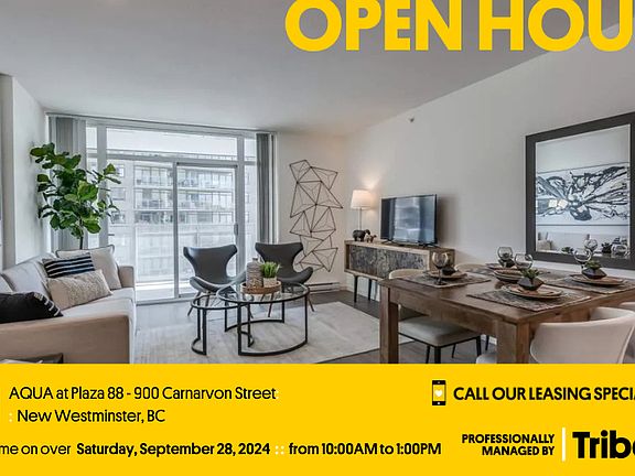AboutAt AQUA, we understand your time is valuable, and we also put emphasis on health and wellness. Our building is centrally located to all essential amenities including a three-minute walk to the New Westminster Skytrain station, a six-minute walk to Douglas College, and a seven-minute walk to the beautiful Fraser River. From the moment you enter AQUA, you will be left with a lasting impression and a warm welcome inside the two-storey lobby. The gracious entrance welcomes residents home, providing an immediate escape from the hustle and bustle of the city. The building has indoor parking stalls and electric vehicle stalls for tenants, indoor Car Share stalls, indoor retail stalls and indoor visitor stalls, along with wireless internet access throughout the building's common areas. Virtual Tour Floor Plan Layouts are for Concept & Finishes only. Layout may vary from actual Unit. Learn more at the building website here!Community AmenitiesVideo surveillanceKeyless entryVisitor parkingElevatorsOn-site staffSocial roomFitness roomConvenience storeStorage lockersBicycle roomWheelchair AccessRecreation roomPublic transitShopping nearbyParks nearbySchools nearbyCar share serviceRoof top gardenSteam RoomScreening LoungeStudy LoungeCovered Parking AvailableYoga StudioFully furnished guest suitesSuite AmenitiesFridgeStoveWasher in suiteDishwasher availableCeramic floorsHardwood floorsIndividual thermostatsDryer in suiteCable readyWindow coveringsInternet readyPrivate balcony (where applicable)