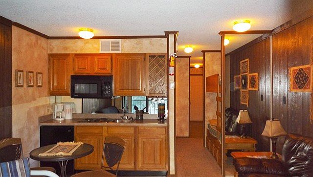 Great one bedroom condo, and sleeps up to 6 people! This unit is in great shape. Desired built in bunk beds, nice peaceful view, mature Aspen tree close enough to almost touch, babbling creek below. Talk about relaxing!