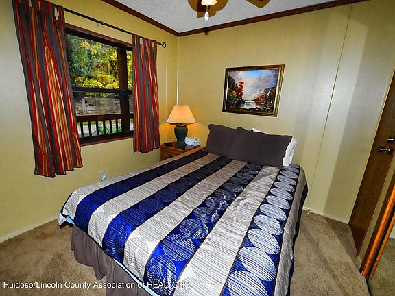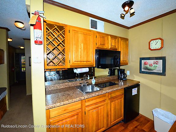 This ground floor entry level condo is also a corner unit. Features include, wood burning fireplace, built in bunk bed with standard twin mattresses, updated countertops and appliances, private balcony with gate for easier access to the Carrizo creek. Condo is located between 2 lakes both a little over a mile away, and a little over a mile to Inn of the Mountain Gods Casino. Why not own this condo for your personal enjoyment, and nightly rent it when not using it!