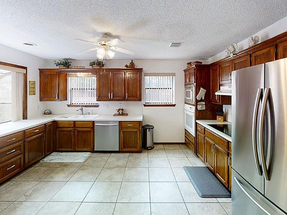 Large Corner Lot with Circle Drive. Wonderful mature landscaping and a sprinkler system. This 4 Bedroom updated has everything one could want! Big Family Area, with recent wood laminate flooring, opens to dining room that will accommodate a large table and chairs. The Kitchen has a "nook" eating area, snack bar and a large pantry. There is a outdoor sunroom for housing all the plants during the winter. Actually, there are 2 Master Bedroom Areas. The Larger has room for living furniture and would you believe 6 closets. Recent Tile and Quartz in the Full Bath. The other master has recent carpet and also own bath with recent Tile and Quartz Vanity. Upstairs Bonus Room that does have a window unit in addition to the CH Vent. Located close to the Commons Shopping Area, and I-35 it is the perfect location. The other bedrooms have recent carpet and share the Hall Bath which also has recent tile and quartz vanity *****New Roof Installed. 10/1/2020***** ****Be sure to check out the visual tour above *****