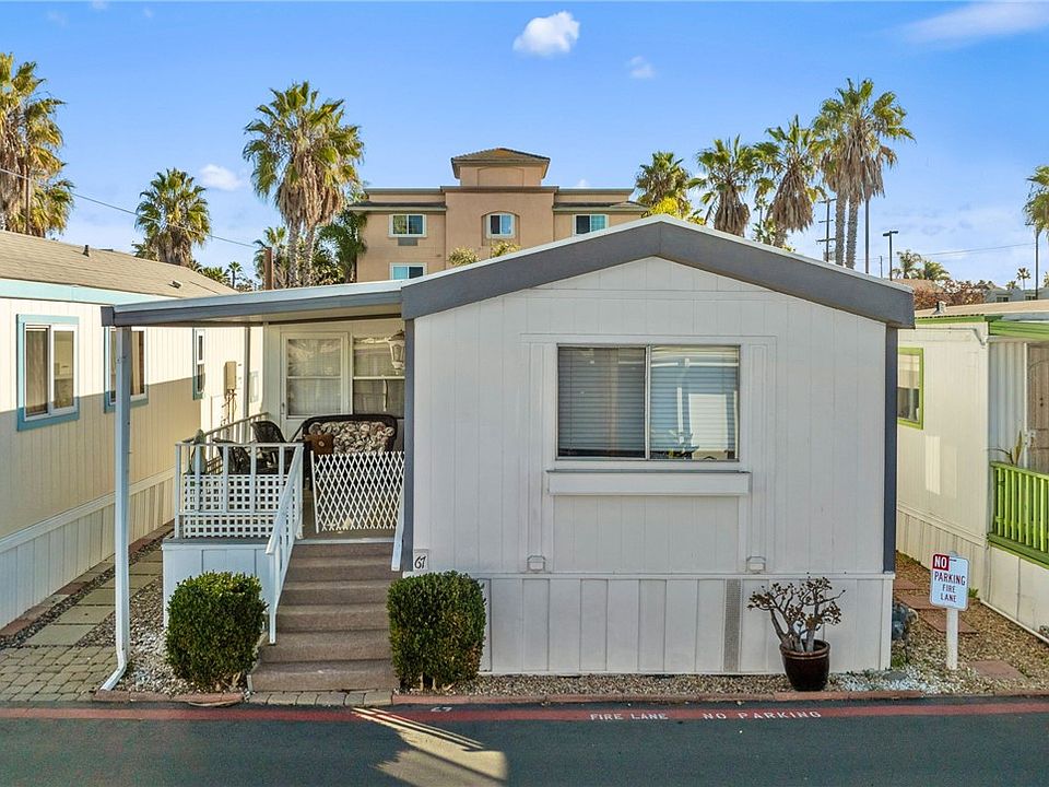 Walk to the Beach! Mira Mar Mobile Estates is a 55+ gated community, close to Oceanside Harbor, the beach and downtown. 2 bed, 1 bath, full kitchen. Enjoy sitting on the front porch enjoying the ocean breeze. Sold fully furnished!