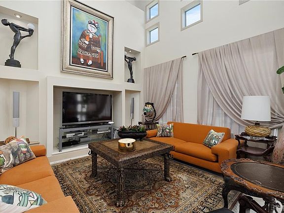 This stunning modern home is now available for rent! Featuring a unique contemporary design, this spacious residence offers a sleek white exterior with curved and angular architectural elements, large windows, and a welcoming entryway. The home includes beautifully landscaped front yard with lush greenery. Inside, the open-concept living area boasts soaring ceilings, elegant natural light, and a sophisticated blend of modern and classic furnishings. The spacious living room flows seamlessly into the dining area, creating an inviting space for relaxation or entertaining. The home also offers a stylish kitchen with gas stove and oven, comfortable bedrooms, and luxurious bathrooms. The backyard is perfect for outdoor enjoyment, featuring a covered patio with seating and dining areas, overlooking a well-maintained lawn with mature trees. This home is ideal for those seeking comfort, style, and a serene living environment.