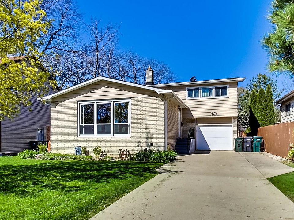Welcome Home! This 3 bedroom, 3 bath home has it all from the newly updated modern kitchen to the hardwood floors on the main level to newer Marvin sliders to the sub finished basement with plenty of storage. Primary bedroom has an additional level for an office, nursery room or a yoga room with plenty of natural light beaming in from the 2 skylights above. Enjoy entertaining during the day or dine under the stars on the large newly stained deck overlooking the very generous fenced in yard. Walking distance or a 2-minute drive to shops, restaurants and more. District 28 elementary/ middle schools and Glenbrook North high school. Don't miss this GEM! 2019: Anderson windows, HVAC, Humidifier, Roof, Marvin Sliders, painting bathrooms, indoor grill & island in kitchen. 2022: painting foyer, hallway, updated kitchen floors, ceiling, countertops, backsplash, lighting, stove, microwave, fridge, dishwasher, electric car charger in garage, smart thermostat, updated electrical box (100 amps).