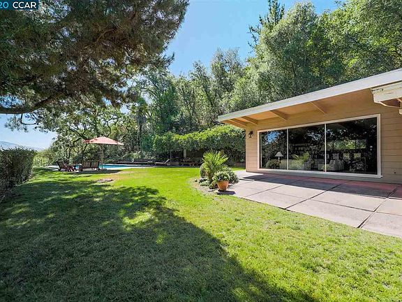 Enjoy the MILLION DOLLAR view of Mt Diablo from this private 1.5 acre property at the end of a court with lush landscape and gorgeous Live Oak trees. This contemporary gem built in 1951 offers 4BR, 3 Baths and an incredible opportunity to make it uniquely yours! The many outstanding features in this home include solid wood paneling throughout, detailed door trim, attractive ceiling beams, spacious living room with stone fireplace and custom built ins. A window wall highlights the classic formal dining room and for the work at home scenario, you will appreciate the inviting office with warm paneled walls and built in book shelves. Let your imagination go wild when you think about how to remodel this eat in kitchen! Enjoy the four spacious bedrooms and two full baths on main level. In addition, there is a lower level that offers a family room with wet bar, a bedroom and a full bath. Enjoy nature by the gorgeous pool or by sheltering in the covered patio by the fireplace. Extraordinary!