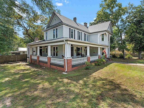 Welcome to 900 E Fannin, a historic home in charming downtown Marshall. The home was built in 1896 in the Queen Anne Victorian style, which includes large wrap-around porches, columns, detailed cornice and trim, shiplap siding, and brick piers. Inside this 5 bedroom, 3 bath home on .75 acres, you will step back in history with original hardwood floors, leaded stained-glass windows, soaring ceilings and natural light. The kitchen is a balance of new amenities coupled with vintage feel, featuring wide hardwood floors, wood ceilings with beams, grand cabinets with glass fronts, period correct hardware, granite countertops, double oven, island with gas range, wide fridge space, wine cooler, and ice maker. Off the kitchen is the formal dining room with more of that old construction charm, including a fireplace with ornate hardwood mantle. The master bedroom has a wood burning fireplace, hardwood floors and ceilings, tall windows, and a door leading to the front porch. Upstairs, you will find 3 bedrooms and 2 bathrooms, a parlor room and upstairs porch. Outside you will find a drive-thru garage with circle drive, and a large shop room with water and electricity already in place. The grounds have mature hardwoods and fruit trees, rounding out the homes charm. The home has many upgrades, including new roofs, AC Systems, plumbing, electrical, double pane tinted windows, alarm and camera system. There is too many cool features and upgrades to list here. Call today to view this gorgeous home!