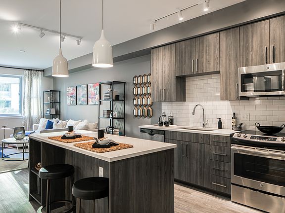 - Exterior features: , 9' Ceilings, Away from home services, Balcony, Business Center, Concierge, Conference Room, EV car charging stations, Eco-conscious design, Energy star stainless steel appliances, Game Room, Gourmet kitchens, Granite bathroom vanities, Guest Room, Keyless entry, Kitchen Finishes, LEED certification, Lawn, Linen closets, On-Site Maintenance, On-Site Management, On-site retail, Online Rent Payment, Package Receiving, Pet care services, Porcelain tiled bathrooms, Pure Raw Juice Bar - Coming Soon!, Quartz countertops, Resident and neighbor activities, Subway tile backsplash, Sundeck, TV Lounge, View Type: Harbor View, View Type: Over an acre of green space with a view, Yoga studio and P90X studio