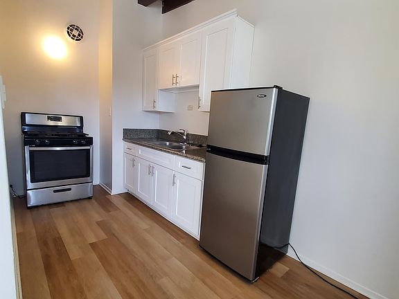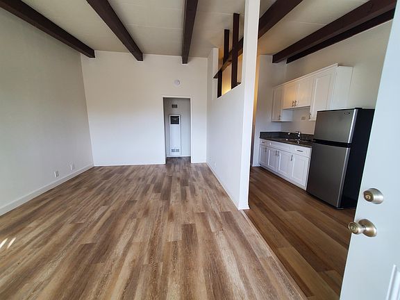 Small building, Upper unit high beam ceiling , 1 bed/1bath unit , all utilities included (water, gas, trash and electricity) Kitchen equipped with stove and refrigerator. 1 car garage with plenty of street parking. ALL UTILITIES INCLUDED