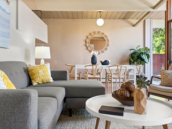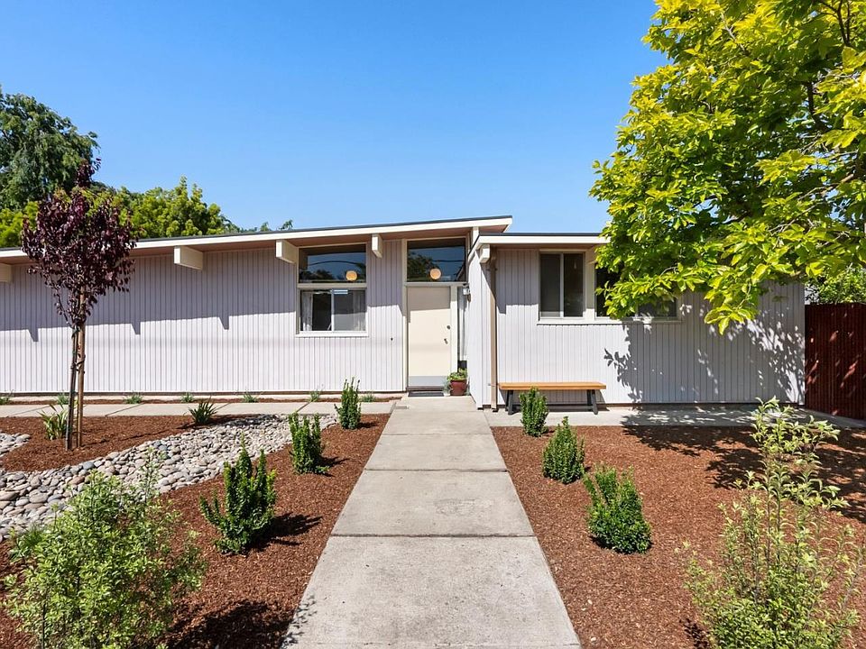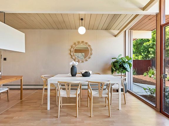 Located on a corner lot in the desirable Triple El Neighborhood, this Mid-century Modern classic Eichler home has been meticulously cared for by the original owner since 1955. The airy interior features large floor-to-ceiling windows, original mahogany paneling, modern formica countertops and classic Eichler light fixtures in the living room and dining room. Three bedrooms and two bathrooms complete the convenient floor plan. The attached, 2-car garage provides convenience, and the sunny and desirable lot offers flexibility for future expansion. A serene back patio is a welcome retreat for entertaining and the large side-yard is perfect for gardening. Two high producing Meyer lemons trees located on the patio and prolific Fuyu persimmon and orange trees adorn the front and back yard. The house's prime location places it within walking distance of the main library, the art center, the Lucie Stern Community Center, parks and top Palo Alto schools. It is a short bike ride to Stanford University and downtown Palo Alto and convenient to 101 for easy access to tech companies, San Francisco and more. Step into this wonderful original Eichler and make it your home.