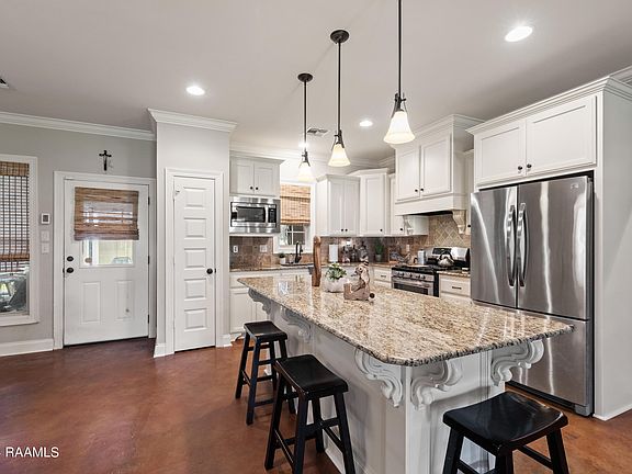 Welcome to your ideal country retreat! This charming property features a spacious corner lot with the added convenience of double driveways, providing easy access and ample parking. The interior boasts concrete floors and stunning granite countertops, perfectly complemented by a large kitchen island that's perfect for both cooking and entertaining. An extra room offers flexibility--use it as a dedicated office space or transform it into an additional bedroom to suit your needs.