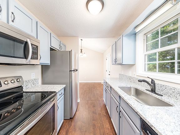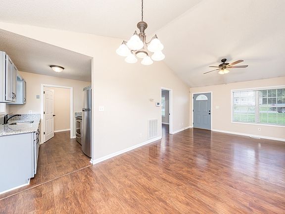 You'll love this updated 3BR/2BA home featuring fresh paint in a modern color scheme, hardwood floors, stainless steel appliances, and brand-new granite countertops. The vaulted ceiling adds an open feel, and there's a separate laundry room with washer/dryer connections. Enjoy the spacious backyard, complete with a storage shed and a deck perfect for relaxing. Lawn care and pest control are provided for your convenience. Sorry, no pets. All just a short walk from the elementary schooldon't miss out, apply today!