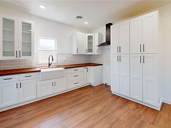 A spacious new bathroom has been added, along with an extra bedroom, transforming this former 2-bedroom into a 3-bedroom home. The kitchen is a true highlight, featuring a bright and airy design with butcher block countertops, new cabinetry, farmhouse sink, deep drawers, and a sleek stainless steel hood.