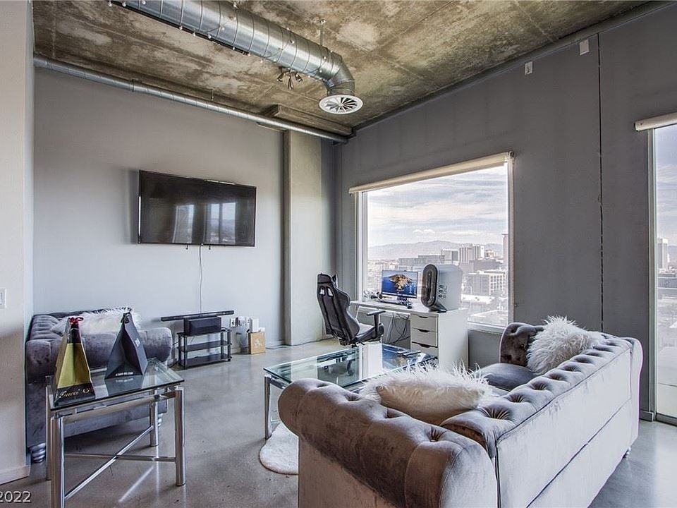 HALF MONTHS FREE RENT!! Call for details....The unit is walking distance to Downtown Fremont, the Arts District. Across from Pawn Stars and their new container park filled with restaurants/bars. Incredible building with rooftop gym and pool/hot tub and a lounge/bar for residents and guests as well as retail shops on the lobby floor. All newer appliances and cabinetry. Large windows, balcony with mountain views, and in-unit washer/dryer.