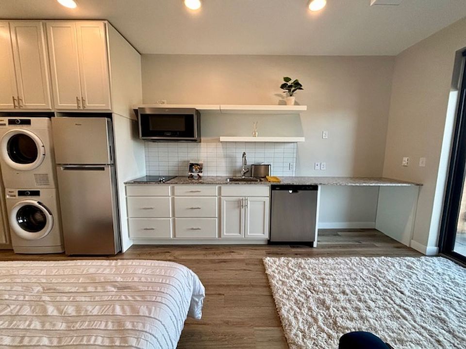 Studio Apartment Smart, Stylish, and Efficient Living! Our studio apartments at Victory on Leonard offer a perfect balance of form and function in the heart of Grand Rapids' West Side. These thoughtfully designed spaces feature high ceilings, recessed lighting, and large sliding glass doors that fill the unit with natural light and lead to a private balcony measuring 7 feetideal for relaxing outdoors. Each studio includes an in-unit washer and dryer, built-in cabinetry, and extended counter space that's perfect for a dining nook, home office, or creative workspace. Clean lines, modern finishes, and a highly functional layout make this studio an ideal home base for busy professionals or minimalist living.