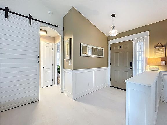 Welcome to this inviting 3-bedroom, 2-bath home in the desirable Eastridge community of Minneola. Set on a landscaped corner lot with fruit trees—mango and avocado right in your own yard—you’ll enjoy both charm and function from the moment you arrive. The freshly painted exterior and 2-car garage add to the home’s curb appeal and convenience. Step inside to an inviting open floor plan with vaulted ceilings and natural light that fills the bright, airy interior. Bamboo and luxury vinyl flooring flow throughout the living spaces, enhancing both style and durability. The gourmet kitchen is designed for everyday living and entertaining, featuring stainless steel appliances, quartz counters, soft-close cabinets, ample storage, and a breakfast bar that connects seamlessly to the dining and living areas. The spacious primary suite offers a peaceful retreat with a walk-in closet and ensuite bath complete with dual sinks. Two additional bedrooms provide space for family, guests, or a home office. Out back, unwind on the covered, screened-in patio overlooking your private above-ground pool, updated in 2025 with new equipment. With a brand-new A/C in 2025 and roof from 2017, this home is move-in ready. All in a prime location close to schools, shopping, and dining—making it easy to enjoy the Florida lifestyle.