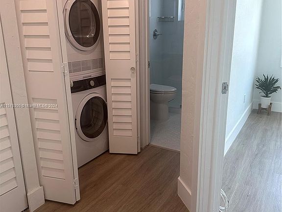 A must see for the pickiest buyer! Exquisite, completely remodeled 1 BD + 1 BA residence on the second floor with private patio. Thoroughly gutted and freshly renovated with permits, this beautiful apartment has a newly remodeled kitchen with glass blue tiled back splash, brand new bath, new flooring, new window treatments, new washer/dryer, new central AC, new electrical panel and hurricane impact glass windows and door. Located in the heart of the Deco District, on leafy Meridian Avenue and an easy walk to shopping, parks and the ocean, this excellently maintained building has a low monthly HOA, full reserves, quiet, professional neighbors and 40-year certification. Pets are welcome and rental parking is available behind the building.