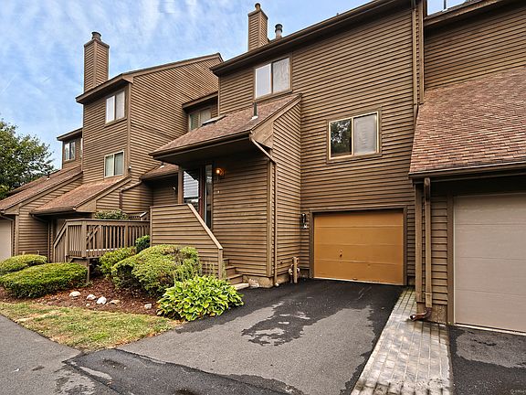 Welcome to this inviting two-story townhouse style condo in the picturesque, and well-maintained Currier Ridge community. Step inside through the foyer with convenient half bath access and steps to the main floor featuring a bright and open living and dining room with cozy wood burning fireplace, sliders to the private deck and easy flow to the spacious kitchen with stylish stainless-steel appliances and plenty of cabinetry, perfect for entertaining! Upstairs, you will find a spacious primary bedroom with large walk-in closet and en-suite bath with tub/shower, and a second well sized bedroom with its own walk-in closet. Down the steps to the basement, you will find a mudroom area off the attached 1 car garage and access to the spacious unfinished basement with laundry area, perfect for all your storage needs. This well-designed townhouse offers practicality for everyday living. Perfectly located, this condo offers privacy, and easy access to shopping, dining, local amenities and major highways. Whether you are a first-time homebuyer, downsizing, or simply seeking low-maintenace living, this is the one for you!