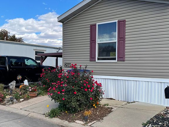 Super sweet, well care for home in Mountain View Mobile home Community! Pretty counter tops through out! Black appliances and washer and dryer too! Functional eat-in kitchen. Nice wood like laminate flooring. Huge shade tree and patio area, garden areas with perennial flowers, partially fenced, car port and off street parking. Central Longmont location close to shopping, bus routes, restaurants.55 plus community