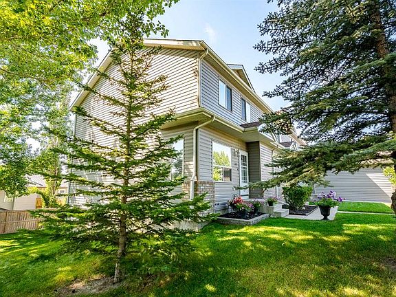 Nestled in a serene, park-like setting, this end-unit 2-storey townhouse combines timeless elegance with modern comfort in a community known for its charm and welcoming neighbors. With two parking stalls and a delightful front flower bed, the home enjoys a wonderful location—within walking distance to schools, parks, playgrounds, and pathways, while also being close to amenities and offering easy access in and out of the city. Inside, tasteful interiors welcome you with a spacious living room anchored by a freestanding gas fireplace and a bright kitchen and dining area with abundant cabinetry and counter space. Upstairs, the large primary suite offers a walk-in closet and cheater ensuite, complemented by two additional bedrooms. The bright, fully finished walk-out basement adds versatile living space, featuring a 3-piece bathroom with a laundry sink, lots of storage, and access to a covered patio, while an upper deck provides another spot to enjoy the outdoors. Thoughtful updates throughout add both style and peace of mind: newer paint in a designer palette, updated lighting and plumbing fixtures, new bathroom countertops on the main and upper floors (2018), new dishwasher (2017), range hood (2021), furnace, hot water tank, humidifier, and central vac system (all 2017), new carpet on the upper level and stairway (2019), and updated interior door hardware (2025). Offering the perfect balance of elegance, community, and convenience, this home is truly move-in ready.
