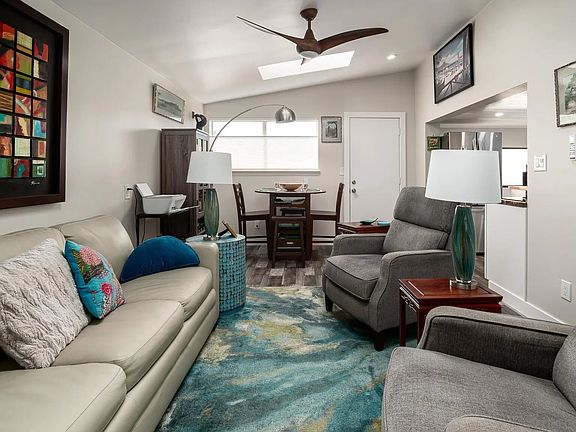 Better than brand new! This 1 BD/1BA beach home has been completely re-built inside and out. New plumbling, wiring, windows and driveway with parking for 2 cars. Inside all new with living room add on with drywall, skylight and LED canned lights. Complete kitchen remodel. New appliances, electric induction stove top, exhaust fan, dishwasher, LG refrigerator/freezer, plus a brand new washer/dryer combo! Remodeled bath with tile shower. Newly painted interior and exterior and roof re-sealed. Drip water system for outdoor plants. Mira Mar is a 55+ gated community just above the beach and harbor in Oceanside and just blocks from downtown with all the amenities you will ever need. Walk everywhere and enjoy the cool breeze from the beach daily. This home comes furnished with everything you need to just bring your bathing suit and move in to enjoy beach life at it's finest! All this and no property taxes!
