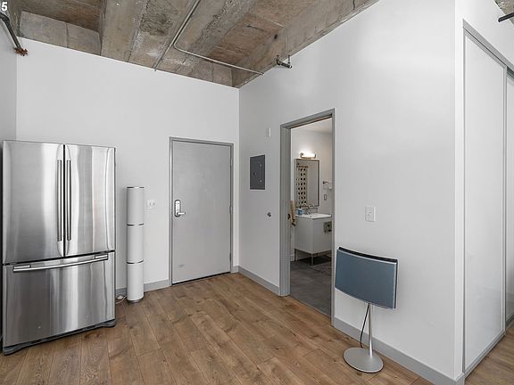Sophisticated industrial loft in Montavilla. Facade of windows with 11ft ceilings blanket this artistic space in natural light. $30K in seller upgrades include kitchen cabinets w/ Italian hardware, quartz countertops, new GE range with air fry feature, plank flooring, new paint, lighting, energy efficient heat pump, closet with Elfa shelving and custom doors, bathroom fixtures and floor. Private 250 sq/ft patio. Secured storage. Community deck w/ Mt. Tabor views, Close to E. Glisan business district and Montavilla Park.