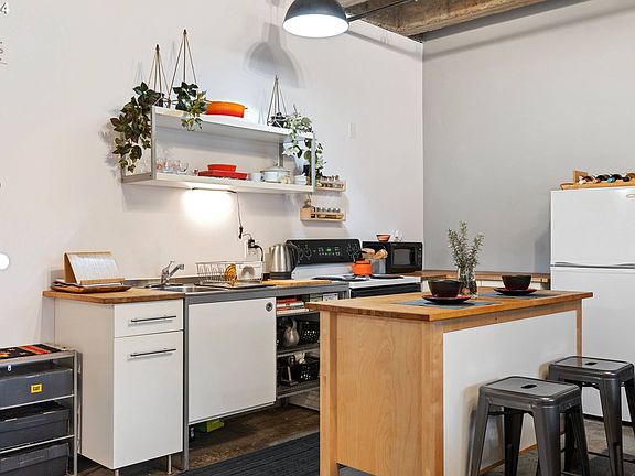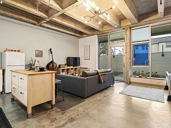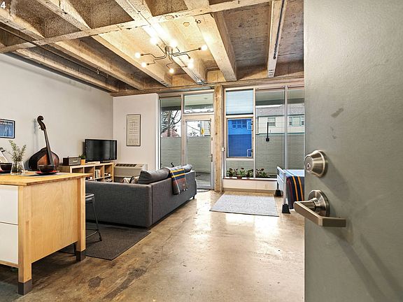 Loft style live/work studio featuring expansive windows and 200 sq ft of patio space! Situated in the vibrant Milepost 5 Lofts community, this unit boasts concrete floors, abundant natural light and high ceilings, creating an inspiring atmosphere for artists and entrepreneurs alike.In addition to the dedicated storage space in the basement, residents enjoy secure bike parking and access to community amenities such as the rooftop deck. Located near public transportation, the Montavilla neighborhood, and the up-and-coming business district of Glisan St featuring East Glisan Pizza, Futura Coffee, and more. This unit offers the best of urban living in a creative community atmosphere.