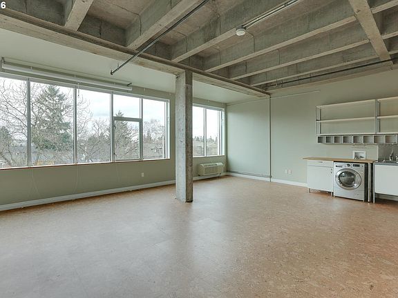 Amazing studio nestled in the heart of the hot Montavilla neighborhood. Milepost 5 is Portland's premier artist community with on site studios, gallery,community garden, and rooftop deck.Many upgrades in this unit including cork floors,combo washer/dryer unit, upgraded appliances and more! View overlooks the garden and full bank of west facing windows makes for beautiful sunsets.Storage unit included, close to Max & Montavilla shops!