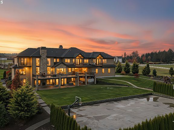 Discover this enchanting storybook setting nestled on 5 acres in the prestigious Rolling Hills 3 community of Ridgefield. This stunning estate offers a perfect blend of space, comfort, and picturesque beauty, making it ideal for family living, in-home care, or multigenerational arrangements. The spacious home features 6 bedrooms and 8 baths, including two luxurious primary suites and a versatile main floor bedroom. The upstairs level boasts three additional bedrooms and a cozy loft, providing ample space for everyone in the family. The daylight basement showcases a bar area, cozy theater and a dedicated gym—perfect for entertaining or end of the day wind down. The open-concept main floor is designed for modern living, with a large, chef’s kitchen, formal dining area, breakfast nook, and welcoming living space—all perfect for gatherings and everyday comfort. A dedicated office space offers a quiet retreat for work or study.Enjoy breathtaking mountain views, including iconic Mt. St. Helens and Mt. Hood, from the serenity of your backyard. Conveniently located just minutes from freeway access, with easy reach to Portland International Airport and downtown Portland, this home combines scenic tranquility with urban accessibility.Ridgefield is the fastest-growing city in Washington, offering a vibrant community atmosphere, excellent schools, and abundant outdoor activities. Welcome to your storybook paradise—where every day feels like a fairytale.