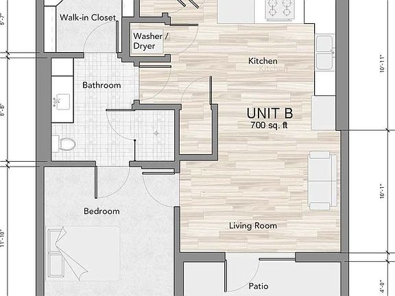 - Total interior livable area: 700 sqft